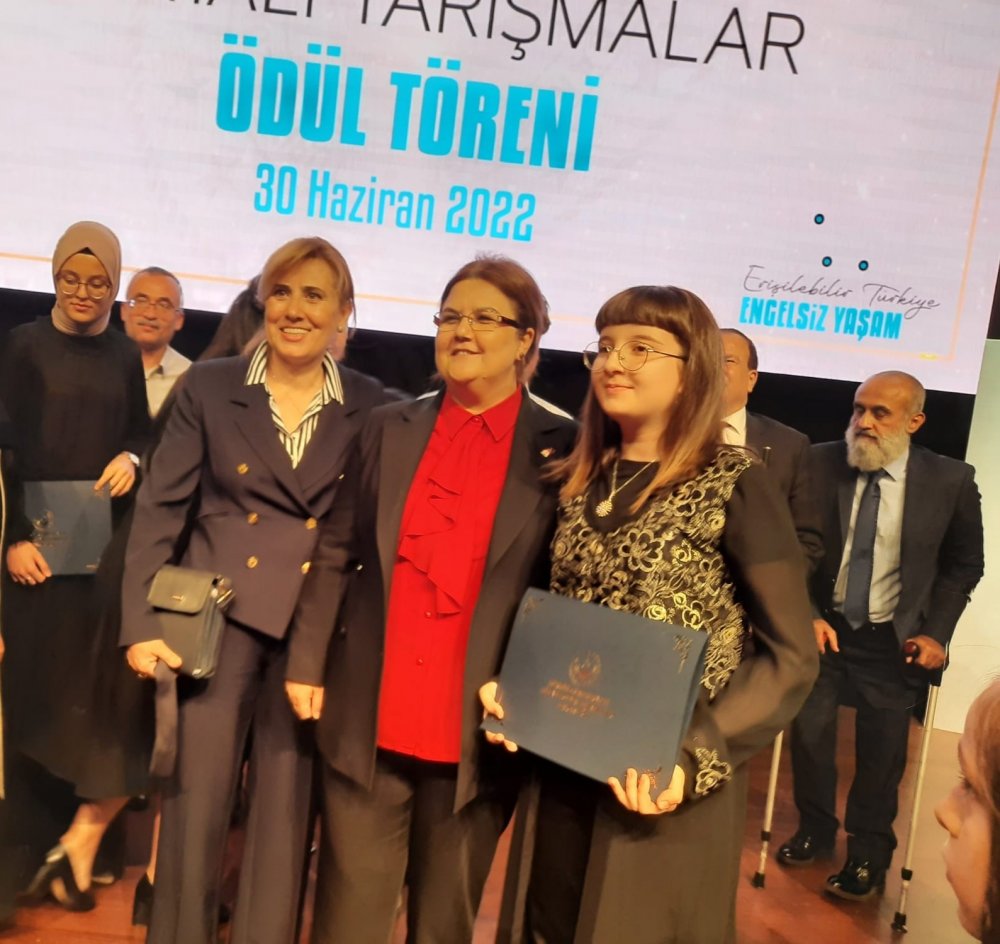 Ünal’ın başarısının ilçenin gurur kaynağı olduğunu söyleyen Gölcük Belediye Başkanı Ali Yıldırım Sezer, “Aile ve Sosyal Bakanlığı tarafından düzenlenen Erişebilirlik Resim Yarışması'nda, Türkiye 1.si olarak ilçemizi gururlandıran, Cumhurbaşkanlığı Külliyesi'nde düzenlenen törenle ödülünü Aile ve Sosyal Politikalar Bakanımız Sayın Derya Yanık'tan alan, Cahit Külebi Ortaokulu öğrencisi, Gölcüklü İpek Burcu Ünal'ı, saygıdeğer ailesini ve Görsel sanatlar öğretmeni Dilek Bayarçelik’i can-ı gönülden tebrik ediyorum” dedi.