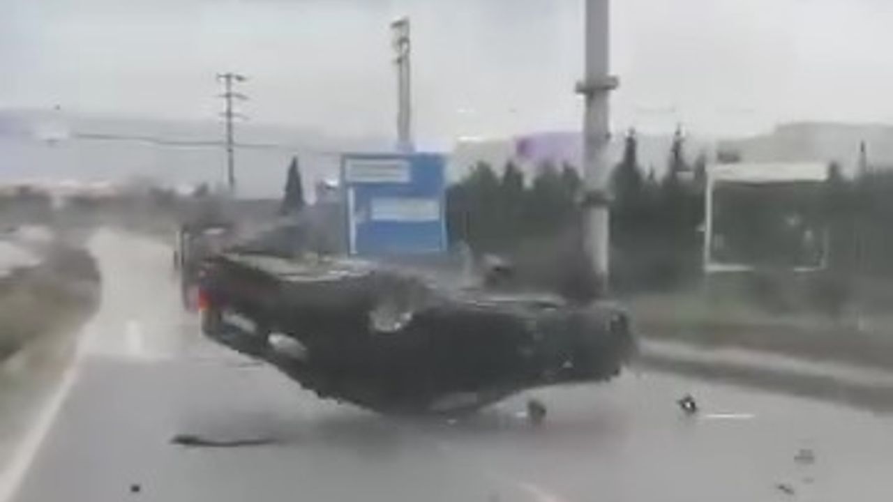 Kaza anı, aynı istikamette seyreden başka bir aracın içerisindeki cep telefonu kamerasıyla saniye saniye kaydedildi.