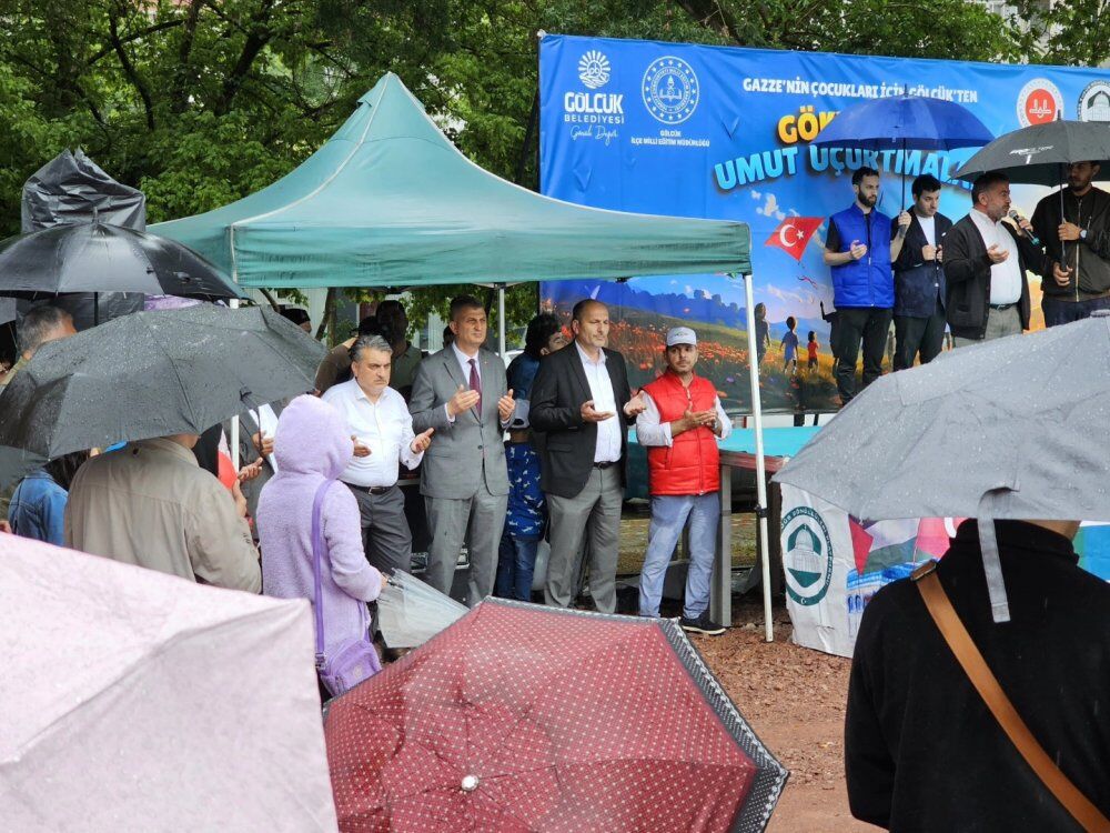 Gölcük’te sağanak yağmur altında toplanan yüzlerce kişi, Filistin’de yaşanan zulme tepki göstermek için tek yürek oldu. Gölcük Belediyesi ve Kudüs Gönüllüleri Platformu iş birliğinde düzenlenen etkinlikte çocuklar ve aileleri Kavaklı sahilinde bir araya geldi. Etkinliğe Gölcük Belediye Başkanı Ali Yıldırım Sezer, AK Parti İlçe Başkanı Kemal Yavuz, Gölcük Kudüs Gönüllüleri Platformu temsilcileri, STK’lar, gönüllüler, çocuklar ve aileleri katıldı. Gazze’deki çocukların yaşadıkları insanlık dışı duruma dikkat çekmek için gökyüzüne umut uçurtmalarının uçurulacağı etkinlik yoğun sağanak yağmur altında başladı. Kuran’ı Kerim tilaveti ve Filistin’deki zulmün son bulması için duaların edilmesi ile başlayan etkinlik, konuşmalar ile devam etti. Hava şartları nedeniyle uçurtmaların gökyüzüne salınamadığı etkinlikte söz alan Gölcük Belediye Başkanı Ali Yıldırım Sezer, yağmur altında toplanan başta çocuklar olmak üzere tüm hemşehrilerine teşekkür etti.
