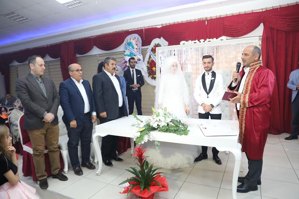 Belediye personelinin kalabalık olarak katıldığı düğün törenine, her iki ailenin yakınları ve sevenleri akın ettiler.